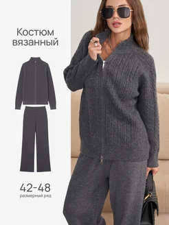 Костюм вязаный трикотажный с брюками на молнии теплый