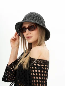 Панама летняя плетеная черная