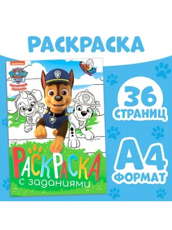 Раскраска с заданиями "Щенки на миссии", А4, 36 стр