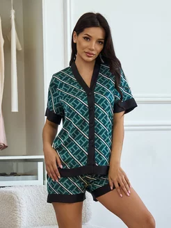 Пижама шелковая с шортами и рубашкой для дома и сна
