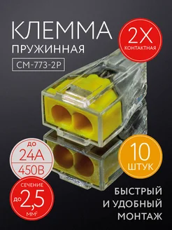 Клемма для проводов, 2 контакта,10 шт,тип WAGO 773 (Ваго)