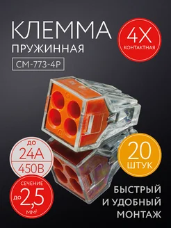 Клемма для проводов, 4 контакта,20 шт,тип WAGO 773 (Ваго)