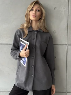 Рубашка куртка теплая оверсайз однотонная