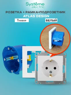 Розетка с заземлением. Рамка. Коробка распаячная подрозетник