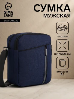 Мужская синяя сумка через плечо на молнии 8х17.5х23 см