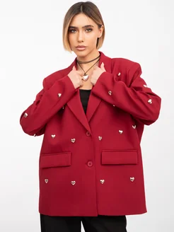 Пиджак бордовый оверсайз с сердечками