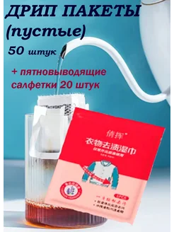 Дрип пакеты пустые фильтр 50 шт + 20 салфеток для одежды