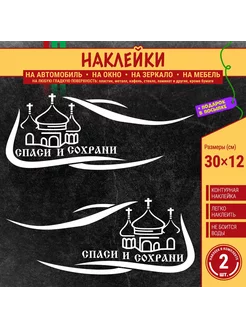Спаси и Сохрани, купола церкви с крестами - наклейка на авто