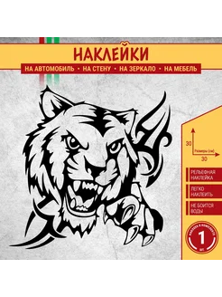 Наклейка "Тигр смотрит прямо" 1 шт, 30х30 см, черная
