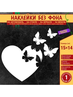 Наклейка "Сердце с бабочками" 1 шт. 15х14 см белая