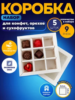 Коробка для 9 конфет подарочная картонная белая набор 5 шт