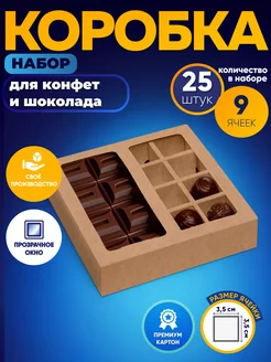 Коробка для 8 конфет и плитку шоколада картонная набор 25 шт
