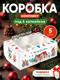 Коробки для капкейков для 6 новогодняя набор 5 шт