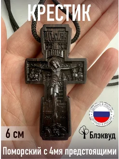 Деревянный крестик 6 см из Блэквуда "Огради Мя" гайтан 5 мм