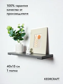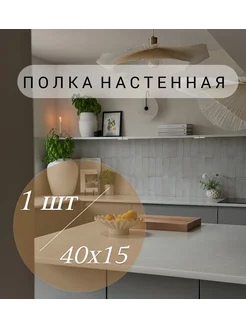 Деревянная полка настенная 40x15, крепление металл, 1 шт