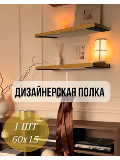 Деревянная полка настенная 60x15, крепление металл, 1 шт