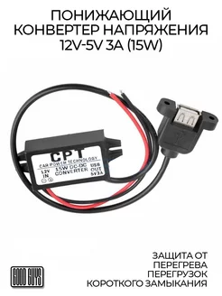 Конвертер напряжения DC-DC 12V - 5V 3A 15W USB