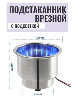Подстаканник врезной с синей подсветкой из нержавеющей стали