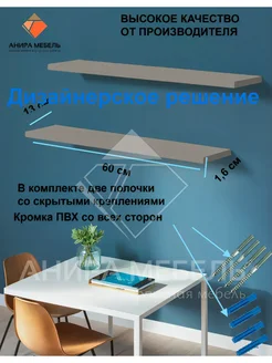 Полочки 2 штуки настенные из ЛДСП Серый алюминий 60 см