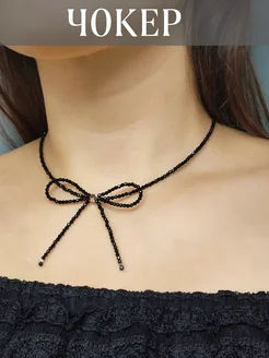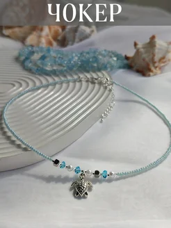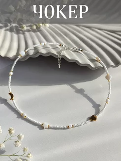 Чокер на шею из бисера с розовым кварцем и сердечком