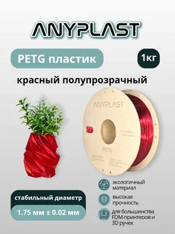 Пластик PETG для 3D печати красный полупрозрачный 1 кг