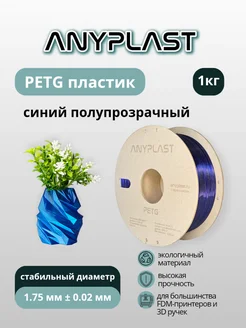 Пластик PETG для 3D печати синий полупрозрачный 1 кг