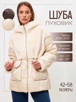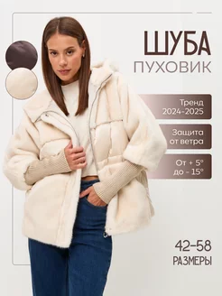 Шуба пуховик 2в1 короткая из эконорки комбинированная