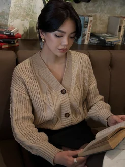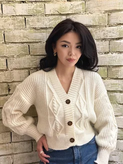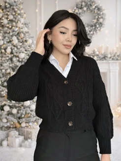 Кардиган оверсайз на пуговицах укороченный вязаный теплый