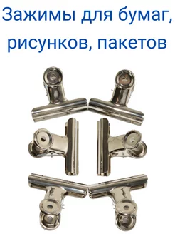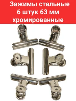 Зажим для бумаг и рисунков 6 штук 63 мм хромированные