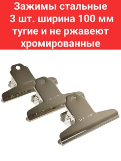 Зажим для бумаг и рисунков 3 штуки 100 мм хромированные