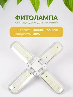 Фитолампа Е27 Лепесток *4 40w Фулл комфорт 4000K+660nm