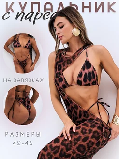 Купальник раздельный с парео 3 в 1 леопардовый