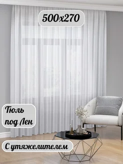 Тюль в гостиную Лен Белый 500х270см 1шт