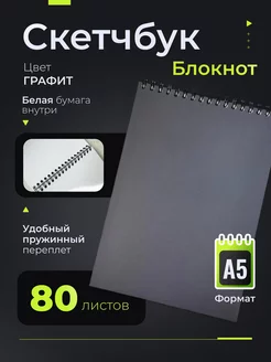 Скетчбук блокнот для записей серый матовый эстетичный а5
