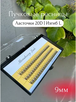 Накладные ресницы пучки Ласточки 20D 9 мм изгиб L