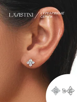 Серьги пусеты серебро 925 пробы, гвоздики с камнями клевер