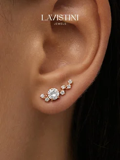 Серьги серебряные гвоздики клаймберы с камнями позолота 585