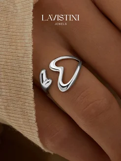 Кольцо серебро 925 пробы регулируемое разъемное сердце