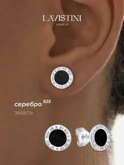 Серьги серебро 925 пробы гвоздики с черной с эмалью