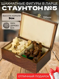 Шахматные фигуры Стаунтон 5 в деревянном ларце