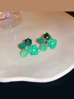 Серёжки зеленые - цветочки и кристаллы