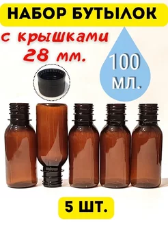 Бутылки для воды 100 мл. 5 шт. c крышкой 28 мм