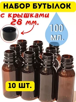 Бутылки для воды 100 мл. 10 шт. c крышкой 28 мм