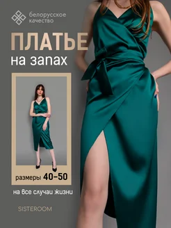 Вечернее праздничное платье миди с запахом зеленого цвета