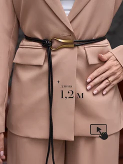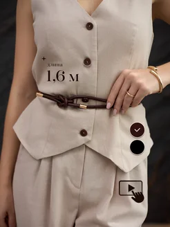 Ремень шнурок кожаный на пояс тонкий с пряжкой