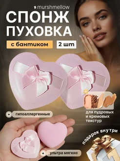 Спонж пуховка для пудры маршмеллоу треугольная с бантиком