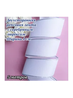 Репсовая лента белая с люрексом 40 мм 5 метров