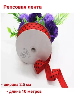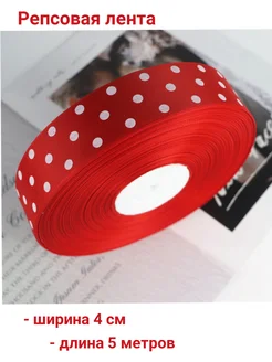 Лента репсовая красная в крупный горошек 40 мм 5 м