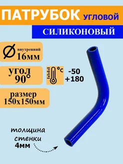 Патрубок силиконовый угловой Ф16 мм L150х150 мм, 90 градусов