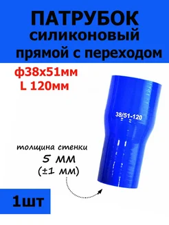 Патрубок силиконовый прямой с переходом Ф38х51 мм L 120мм